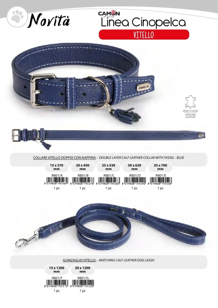 R801/F Cinopelca Borjúbőr póráz 15*1200 mm kék