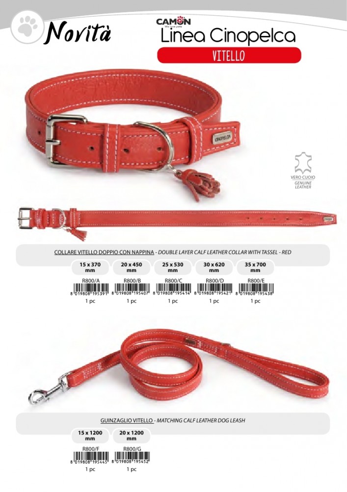 R800/G Borjúbőr póráz  piros 20*1200 mm